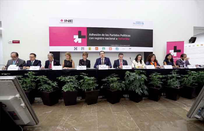 ElInstituto Nacional Electoral (INE) firmó junto con los partidos políticos y la campaña internacional HeForShe, perteneciente a la Organización de las Naciones Unidas (ONU), un acuerdo para la igualdad de género durante las contiendas electorales de México así como la reivindicación de los derechos políticos de las mujeres.