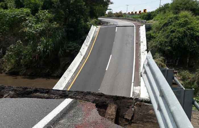 Entre los daños más importantes registrados se encuentra el colapso de un puente en la autopista México-Acapulco,en su tramo de Cuernavaca-Chilpancingo; por lo que la circulación hacia el sur permanece cerrada. Afectaciones similares ocurrieron en la carretera Oaxtepec-Cuautla, donde se quebró una sección de la vía, y en el límite entre Oaxaca y Puebla se registraron afectaciones menores por caídos.