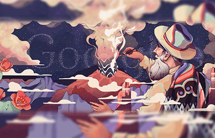 Este reconocido paisajistatenía un particular afecto por losvolcanes y las montañas, algo que se puede observar en el doodledonde se conmemorasu nacimiento. En vida, el Dr. Atl fue merecedor de la Medalla Belisario Domínguez y el Premio Nacional de Bellas Artes por su actividad y relevancia artística.
