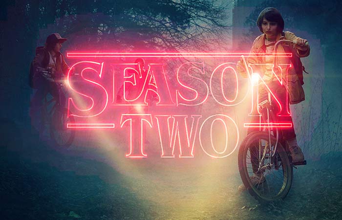 Stranger Things 2está planificada para ser estrenada el 27 de octubreentrante, 13 días después de haberse reveladosu"trailer final"y en plena época del Halloweenestadounidense. Referenciasa esta festividad se pueden ver a lo largo de todos los videos lanzados para promocionar la segunda temporada, desde clásicas decoraciones de fantasmas y calabazas, hasta disfracesinspirados en la popular película Ghostbusters.