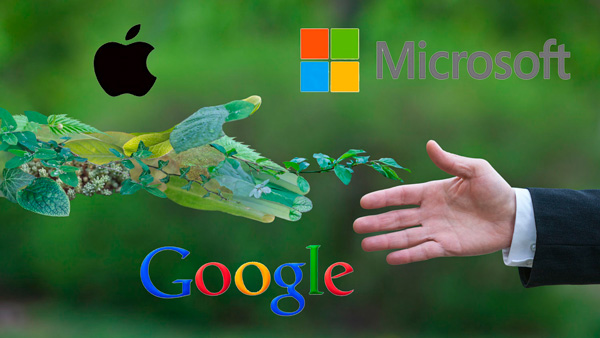 En tiempos recientes, importantes tecnológicas como Apple y Microsoft están trabajando en prácticas sostenibles en función de crear estrategias a favor del medio ambiente. Por su parte, la gigante de la manzana, ha fijado el mismo objetivo que Google: todo lo fabricado será de material reciclado; en el caso de Microsoft, se busca reducir un 75 por ciento las emisiones de CO2 para 2030.