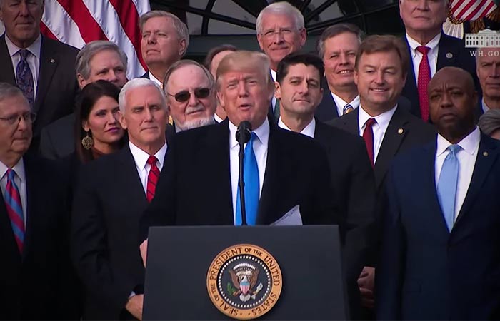 Tras una segunda aprobación del Congreso de los Estados Unidos de América (EUA), el presidente Donald Trump celebró la aprobación de su amplia y polémica reforma fiscal, con la cual se plantea reducir sustancialmente los impuestos pagados por compañías e individuos al tiempo que se descontinúa una de las principales iniciativas promovidas por su predecesor, el ObamaCare. Si bien este movimiento ha sido bien recibido por simpatizantes republicanos, múltiples riesgoshan sido detectados por la oposición demócrata e instituciones internacionales.