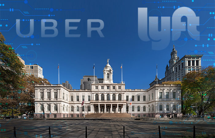 La batalla entre el ayuntamiento de la ciudad de Nueva York y servicios de viajes por medio de una aplicación, Uber, Lyft y similares, concluyó con la aprobación de nueva legislación agresiva con el objetivo de regular las actividades de este tipo de servicio de transporte. El modelo de negocio inundó el tránsito en las calles neoyorquinas, y a la vez, elevó el nivel de pobreza en miles de conductores.