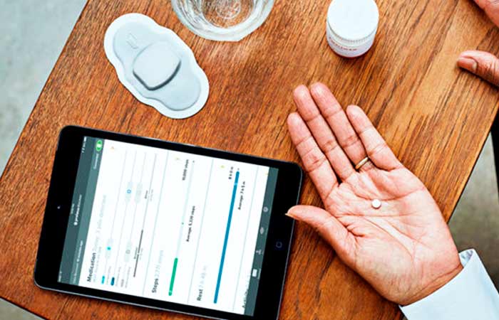Promocionada por la Rush University Medical Center, la pastilla funciona de la siguiente manera: al medicamento prescrito al se le añade un sensor del tamaño de un grano de arena. Después de ingerirlo, éste se activacon el ácido del estómago y envía una señal vía Bluetootha tu iPad. En caso de que no haya sido detectada, inmediatamente se le notifica al usuario que aún no se ha tomado la dosisdel día.